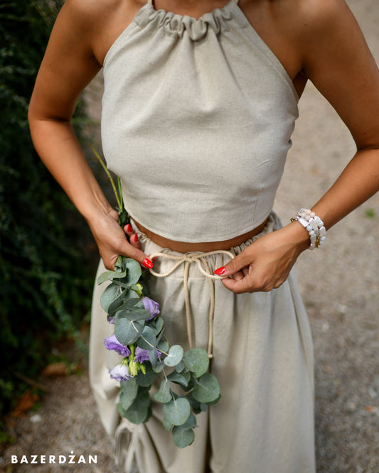 Open Back Linen Top - Sand Beige by Bazerdzan Wear