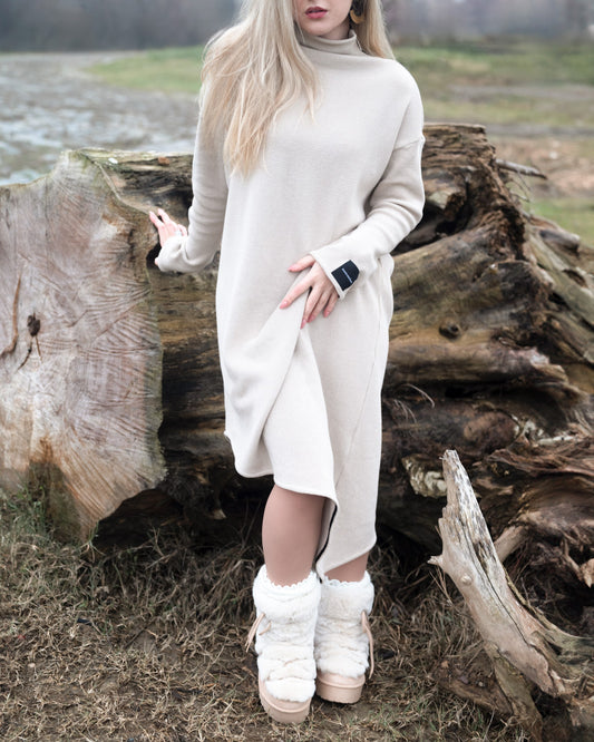 Asymmetric Chic Dress - Beige