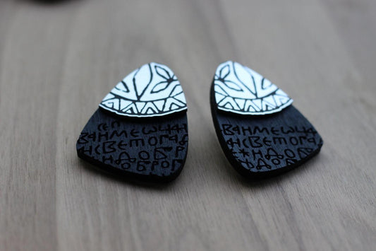 Stećak Inscription with Rosette Earrings - by IVYQ studio