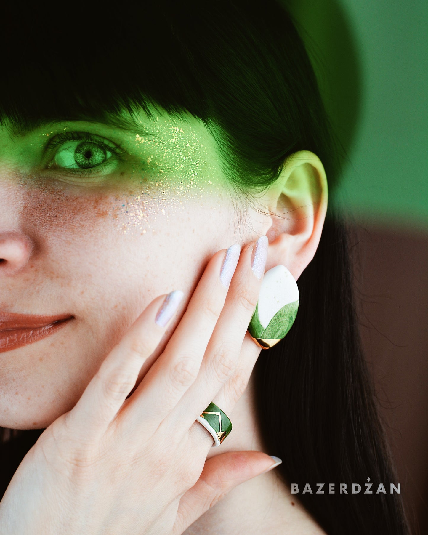 Elevate your style with these exquisite handmade porcelain earrings by Tekne, featuring delicate gold plating for a touch of elegance.