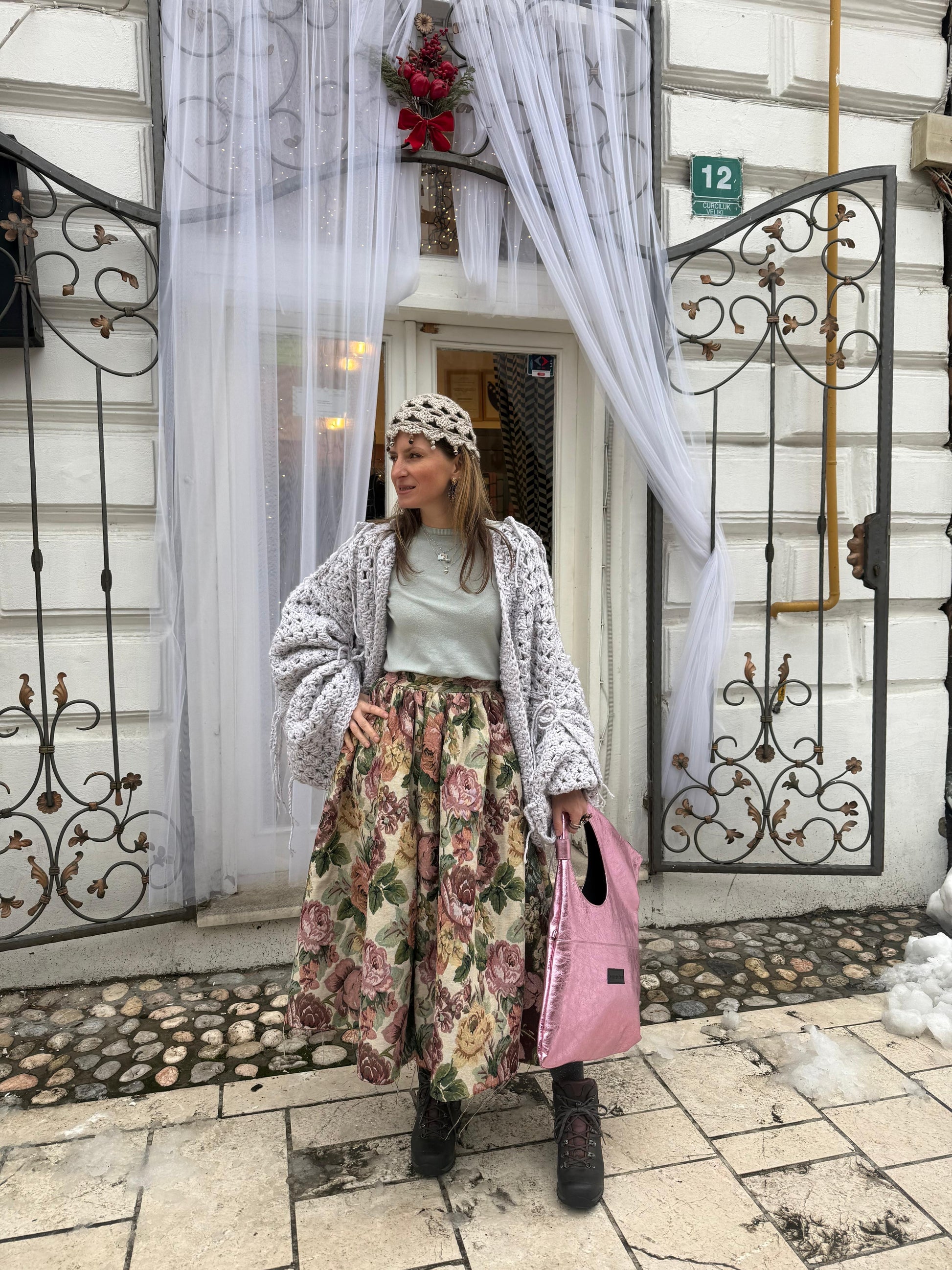 This Hanuschka skirt is a true standout piece that blends vintage inspiration with contemporary design. It features a rich floral tapestry pattern that brings warmth, texture, and a timeless romantic feel.